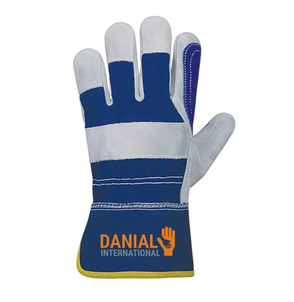 Top-quality Rigger Cow Split Leather Glove Blue color cotton twill backing With Blue Cow Split Leather Reinforced Palm